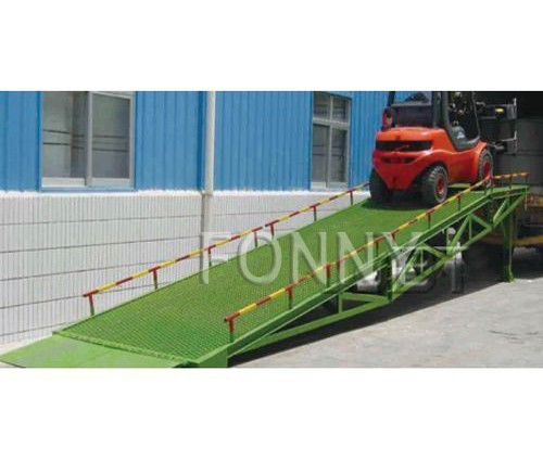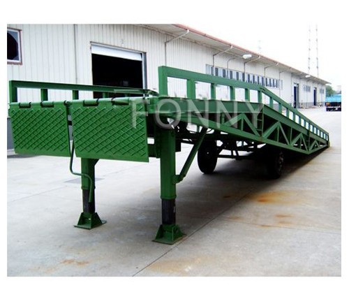 移動式液壓登車橋是與叉車配合使用的貨物裝卸輔助設備,可根據汽車車廂的高低調節高度,叉車可以直接通過本設備駛入車廂內部進行貨物的批量裝卸,僅需單人作業,即可實現貨物的快速裝卸。它使企業減少大量勞動力,提高工作效率,獲取經濟效益。